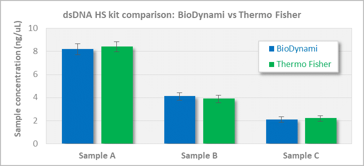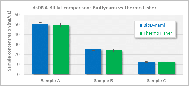 Comparison of BioDynami dsDNA Quantification Broad Range Kit with Thermo Fisher kit