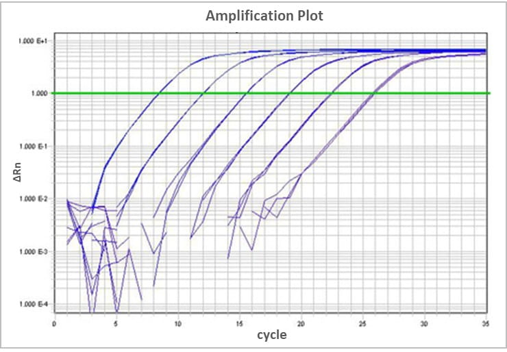 NGS Library Quantification Standards with PCR Primers (Ion Torrent platform): real time quantitative PCR curve of the standards.