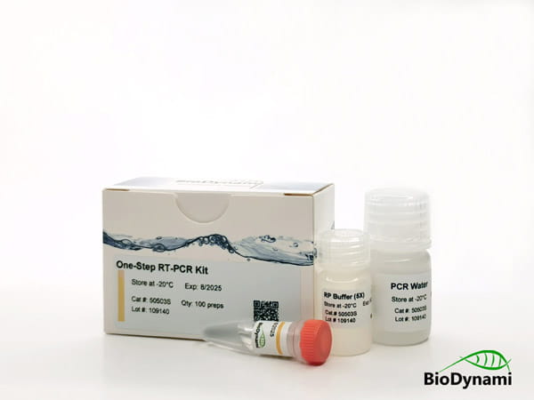 The One-Step RT-PCR Kit combines reverse transcription and PCR into one reaction step, which eliminates the need for two-step reactions. The one-step strategy avoids the transfer of reaction mixtures from the reverse transcription step to the PCR step, and reduces the contamination risk and minimizes tedious sample handling.